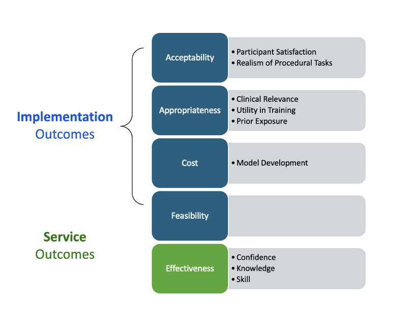 The pilot phase aimed to assess the acceptability and relevance of the model among local otolaryngologists, while the training event focused on evaluating the effectiveness of the model in improving tracheostomy management skills in a real-world training environment. These evaluated domains are summarized in Figure 2.